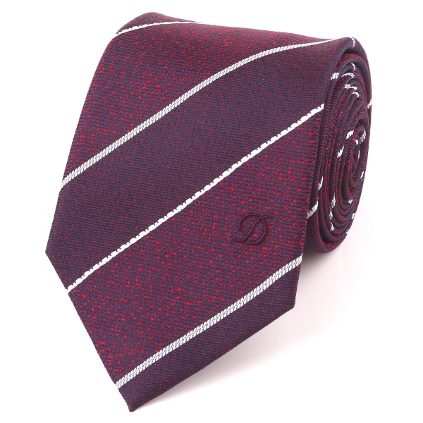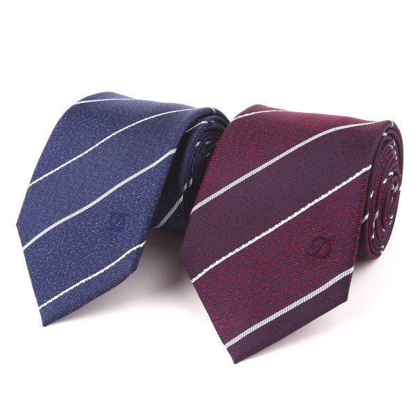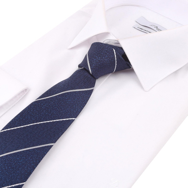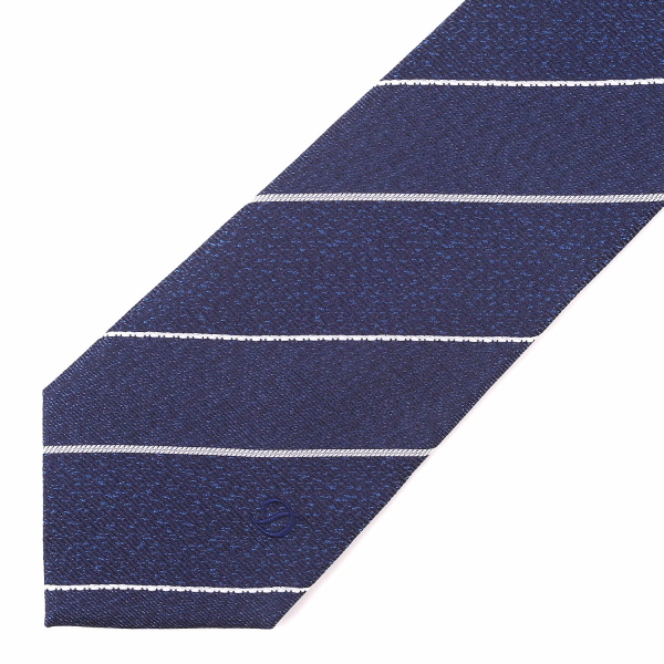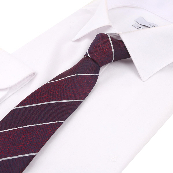 서로 조직감이 다른 조직과 화이트 배색의 스트라이프가 조화를 이룬 타이