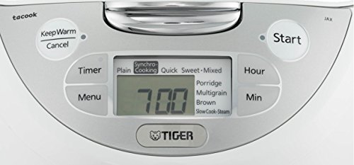 Tiger's Micom Rice Cooker & Warmer, Steamer, and Slow Cooker allows you to cook more than rice. It comes with Tiger's unique "tacook" cooking plate, which allows you to synchronize rice cooking and main dish to cook two dishes at the same time. With minimal preparation and the press of a button, Automatic Cooking Logic actively monitors cooking temperatures to create the perfect meal. With automatic "Keep Warm" mode and the two preset delay timers (up to 24 hours), you can prepare easy and healthy dish to your needs.Feature