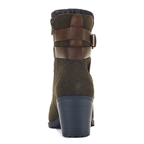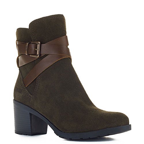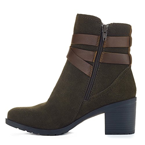 Product DescriptionSet the trend with the stylish Arvida Ankle Boot. Showing off a wrap around buckle and a chunky heel. Zip closure Removable memory foam insole Anti slip outsole PVC free.0