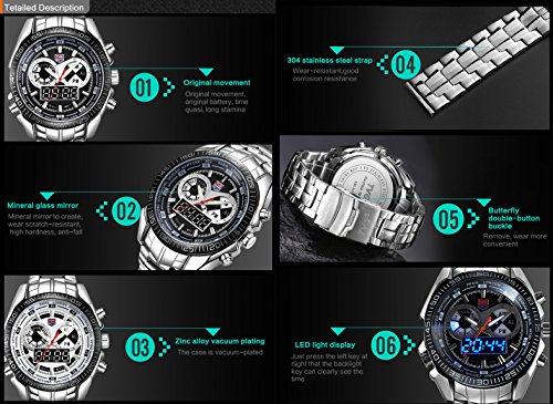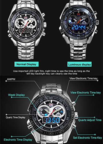 Accurate Japan Metal Quartz Movement and Powerful Digital movement which powered the Bright LED digital display