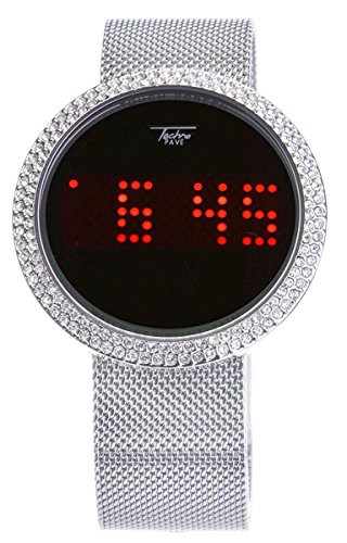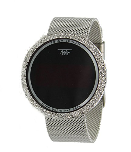Techno Pave Iced Out Bling Lab Diamond Silver Tone Digital Touch Screen Sports Smart Watch Mesh Band