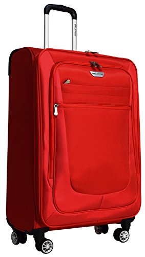 -. Brand : Ricardo Eureka -. Color : Red -. Department : unisex-adult (luggage only) -. EAN : 0018982729567 -. Feature : Travel tested components progress through an ongoing series of rigorous quality tests to ensure smooth and reliable operation. / A multi-stage retractable handle adjusts to the height that best fits your needs, providing optimal comfort and easy movement. / Custom 360° wheel system smoothly glides in any direction, enhancing stability and minimizing effort. / The case expands with the pull of a zipper added packing capacity. Multiple exterior zippered pockets keep personal items and other travel essentials handy. / 10-Year Limited Warranty -. ProductGroup : Apparel -. ProductTypeName : LUGGAGE -. Size : One Size -. Title : Ricardo Eureka Deluxe Superlight 26" Luggage Spinner (Red) -. UPC : 018982729567