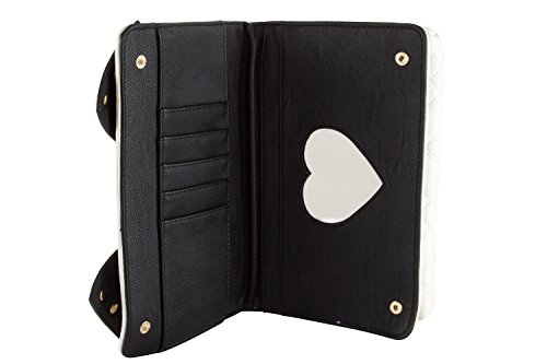 For the perfect blend of fashion and function, get the stylish Betsey Johnson wallet on string. Its constructed of all soft faux leather exterior, signature hardware, zipper pocket with center magnetic slot. snap front flap pocket with 2 bill, 6 credit card and heart mirror, adjustable removable cross-body strap offers security while wearing.