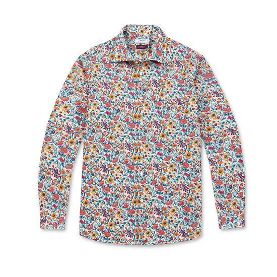 - 화사한 색상의 플라워 프린트가 멋스러운 남성 드레스셔츠.