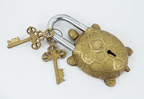 -. Binding : Tools & Home Improvement -. Brand : Exotic India -. Color : Silver -. EAN : 0640793941694 -. Feature : The Functional Brass Turtle Padlock 5.5" with Two Keys / Tibet Padlock is 5.5'' X 3'' inch and weight - 527 Grams / 1.16 Pound / Handling Time- 1 Day , -. Label : Exotic India -. Manufacturer : Exotic India -. Model : Turtle Padlock -. NumberOfItems : 1 -. ProductGroup : Home Improvement -. ProductTypeName : SECURITY_ELECTRONICS -. Publisher : Exotic India -. Size : 1.5 inch X 5.5 inch X 3.0 inch -. Studio : Exotic India -. Title : Garden Lock Functional Brass Turtle Padlock 5.5" with Two Keys -. UPC : 640793941694