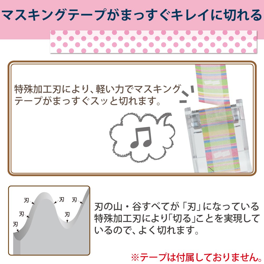 - In addition to masking tape, various types of tape, such as cellophane tape and PP tape which was hard to cut until now can be cut cleanly straight.