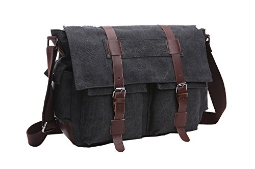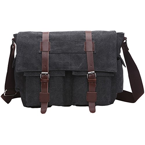-. Brand : Anlamb -. Department : mens -. Feature : Main Material: high density canvas,it is thick and sturdy. / External Dimensions: 16.1" L x 5.1" W x 13"H. / Large Capacity: lots of pockets,8 in all,includs 2 zipper pockets,2 side pockets,2 front roomy magnetic snap pockets,the main zipper pockets contains 1 notebook compartment(fits up to 15.6 inches screen),1 zipper inner pocket. / Retro style featuring classic button closure flap over design for easy access,leather trims,adjustable shoueler strap and three level buckle,exqusite stitching,corner binding. / Durable casual multipocket bag,pefect for shool,outdoor hiking,camping,traveling,office working. -. Model : AL8168_P -. ProductGroup : Apparel -. ProductTypeName : LAGE -. Size : One Size -. Title : Anlamb Men's Vintage Canvas Laptop Messenger Bag Casual School Bag Briefcase