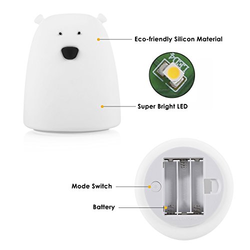 S&G Children Night Light,Little Bear Silicon LED Night Lamp, Sensitive Tap Control, 2 Light Modes, Battery Operated Dim Light for Kids Children Baby...