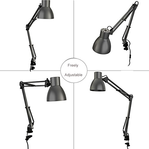 -. Title : ToJane LED Long Swing Arm Desk Lamp Clamp Metal Architect Adjustable Folding Twin-Arm Clip-on Table Lamp