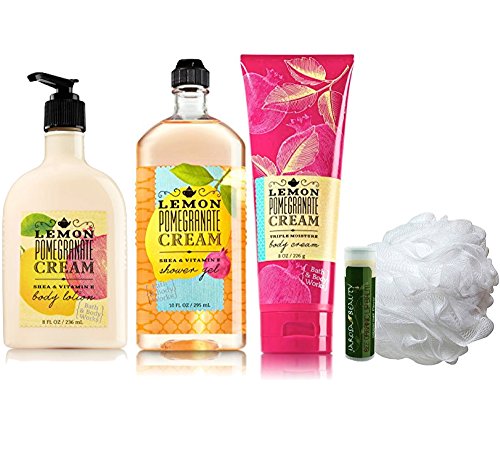 -. Title : LEMON POMEGRANATE CREAM Bath & Body Works Deluxe 5 Piece Gift Set of Body Lotion, Shower Gel, Ultra Shea Body Cream & Shower Puff with a Jarosa Bee Organic Peppermint Lip Balm by Jarosa Gifts