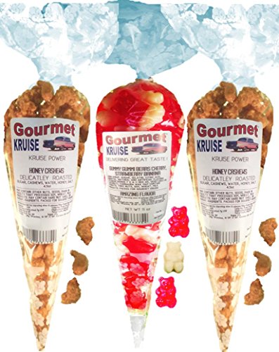 -. Title : Cashews (2) Honey Salted Roasted Delicately (1) Red Wild Cherry White Strawberry Banana Gummi Gummy Bears (NET WT 20 OZ) Gourmet Kruise Signature Gift Bags