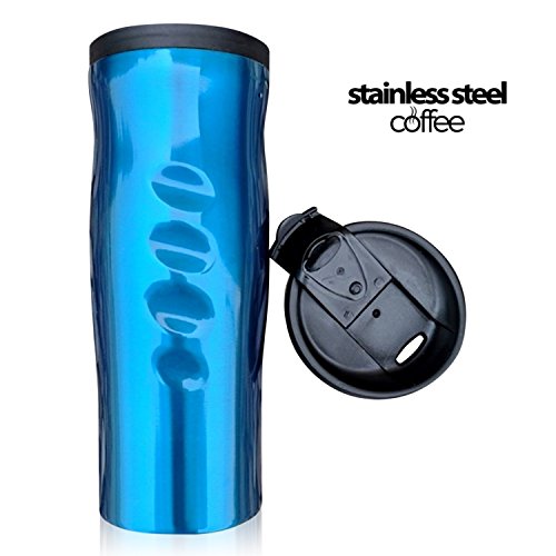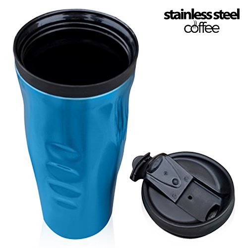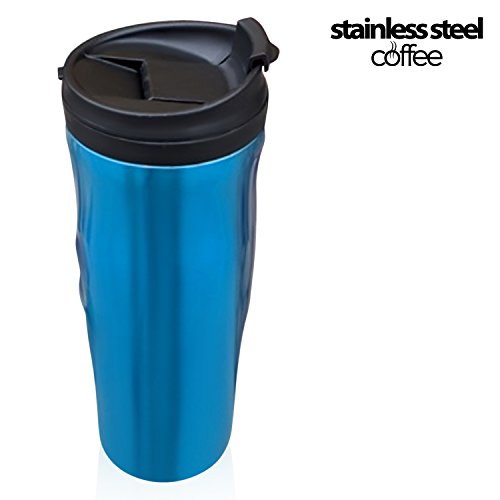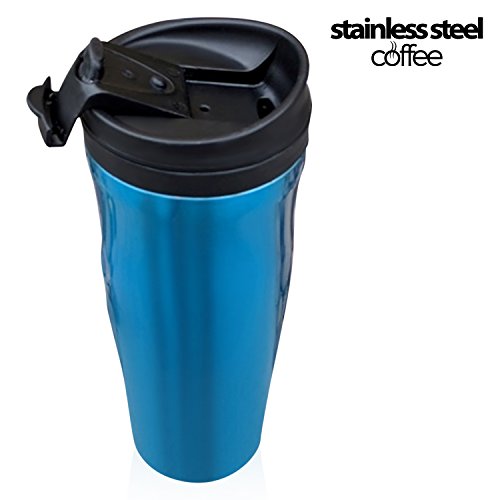 Stainless Steel Coffee tumbler - double wall insulated coffee travel mugs with screw lids - 16 ounce, ultralite, brilliant blue