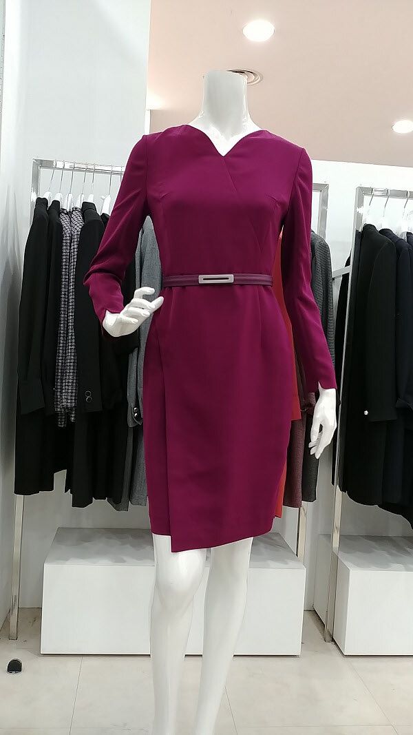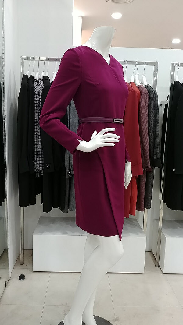 기본라인의 정장원피스입니다. V네크라인으로 얼굴선이 갸름해보이며,스커트라인의 한겹덧되있어 부담스러운 부분을 커버해줍니다. 뒤허리밸드라인이 쟈켓느낌으로 덧되있어 밋밋함이없고 세련되보입니다..바이올렛컬러의 우아함과 단아함이 조화를이뤄 여성스럽고 매력적입니다.오피스룩 모임룩으로 돋보이는 디자인입니다.컬러 네이비,바이올렛사이즈 55,66,77총장 87cm