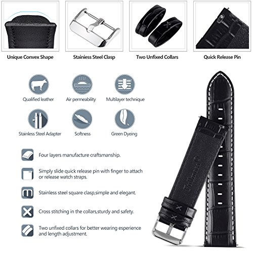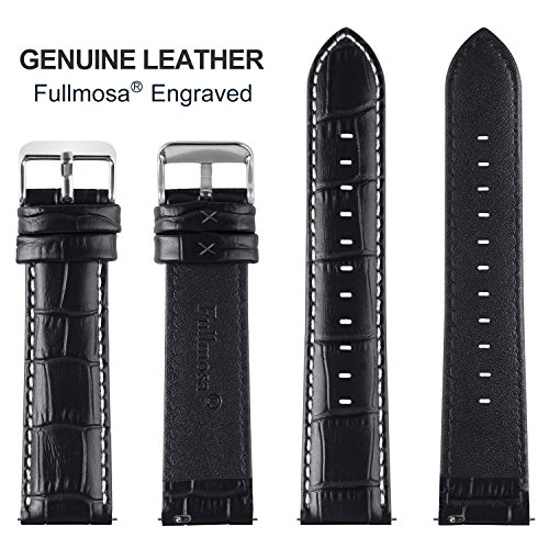 -. Feature : High-quality calf leather: This leather watch strap manufactured by Fullmosa comes with an exquisite gift box. The watch straps are made of 100% full-grain leather with superior craftsmanship, comfortable and durable to wear. All bands can reach the ROHS standard and all material contains NO harmful substance. / Easy to install: Quick release pin design, easier and faster to release or attach the band with finger. Just a simple slide can install the strap into your watch. Package contains an assistant tool for changing the metal clasps or the sP.R.Ing bar in the necessary time. / Width selection: Use with any traditional or smart watch that uses 18/20/22/24mm sP.R.Ing bars. Fit Huawei Watch; Samsung Gear; Moto Watch; LG Watch; Asus Zenwatch; Pebble Watch; Withings Watch, Casio watch, Guess watch, Timex watch, Watch, Nixon Watch etc. Not only fit the brands listed, please read the selection guidance and measure your watch. / Wrist size: Designed to fit almost any wrist 5.7"-8.2". The 18mm band is 2.95" x 4.52" (7.47" total length) and the 20mm/22mm/24mm bands are 3.15" x 4.72" (7.87" total length). 9 (18mm) or 10 (20/22/24mm) precision cut eyelets allow for individualized adjustment to achieve the perfect fit. Two cross-stitched collars allow the band to be secured. / Notice: Please ensure you choose "Sold by Fullmosa®" for guaranteed quality. We are the ONLY authorized retailer of our brand. If you have any problems with your order please contact us for prompt and courteous service. Our contact information can be found on the every genuine Fullmosa® box.
