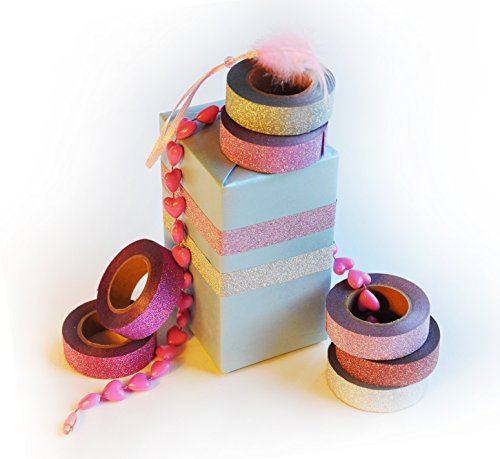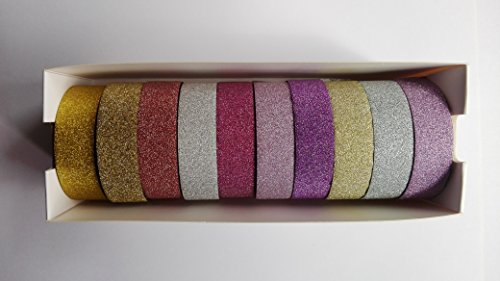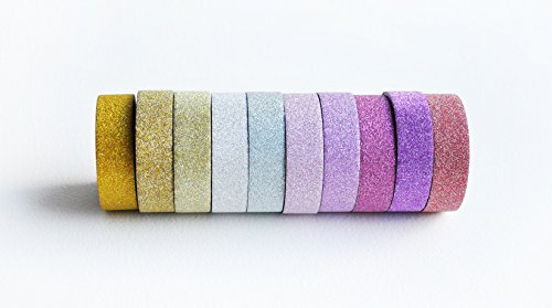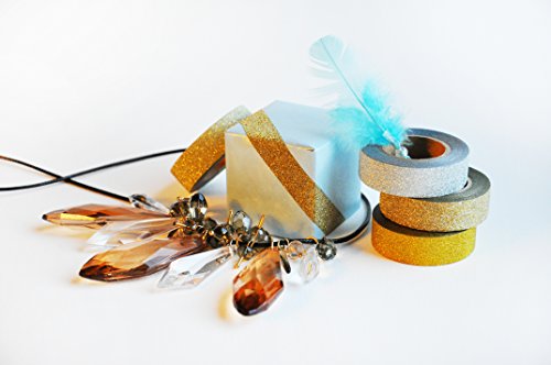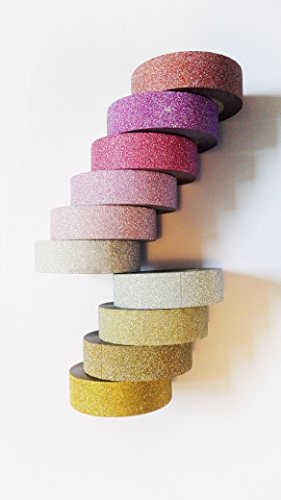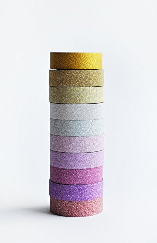 Decorative Glitter Gold Washi Masking Tape Set of 10 rolls- Best for Scrapbooking, Cards, Calender, DIY, Gift Wrapping, Bullet Journal, Office Party, Large 10 meter length