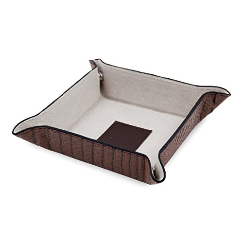 -. Feature : Valet tray has plenty of storage for change, keys and miscellaneous items / Pigskin leather lining adds a handsome touch / Leather simulates crocodile skin leather / Comes in a nicely packaged in a box!