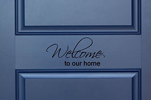 Welcome to our home in Cursive Indoor/Outdoor Lettering Wall Art Decor Sticker Vinyl for Door 10.25" X 5" (Black, Matte)