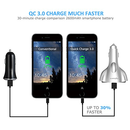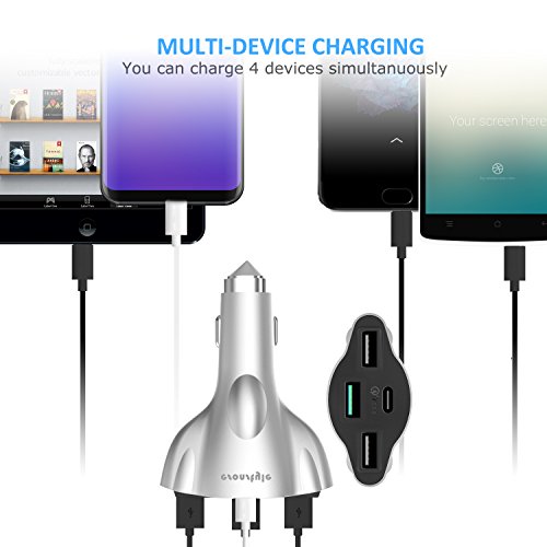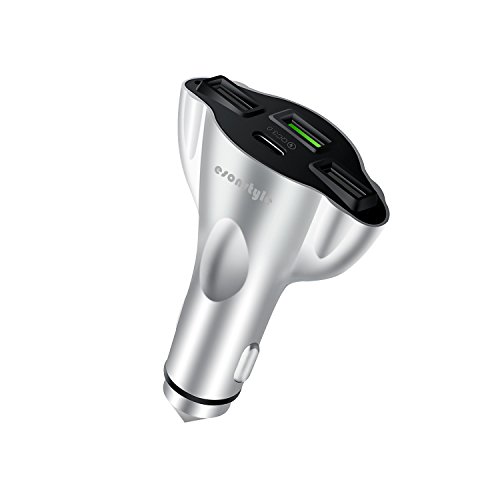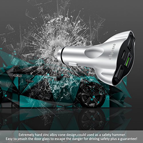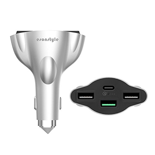 Esonstyle 4 Port Quick Charge 3.0 Car Charger,USB Type C Smart Car Charger with Safety Hammer for iPhone, Samsung Galaxy S8/S7/S6 Edge, Android, LG and more