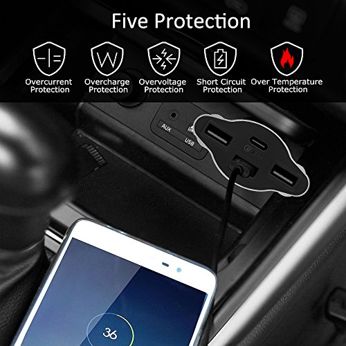 - 4 Port Charger:2 standard USB Port, 1 Quick charge 3.0 USB Port, 1 Type C port. Support charge 4 devices in your car at the same time.
