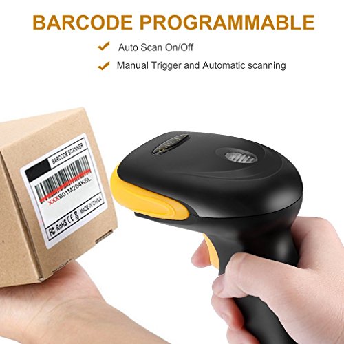 - EASY TO INSTALLAND SHOCK-RESISTANT-The barcode scanner has simple installation and ideal use in a wide range of situations and workplaces. Its design is stylish,and ABS plastic guarantees long service life. Easy grip and ergonomic design make for comfortable fit in your hand. Matching simple, one pairing, long-term use, repeated pairing also can suppport.