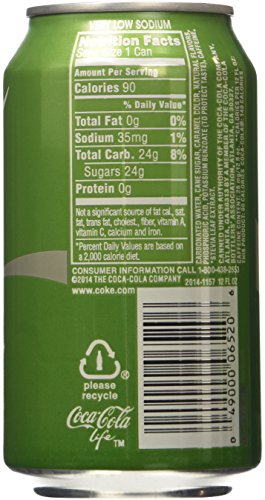 Coke Life Reduced Calorie Coca Cola with Stevia 12 Oz Cans - Case of 12