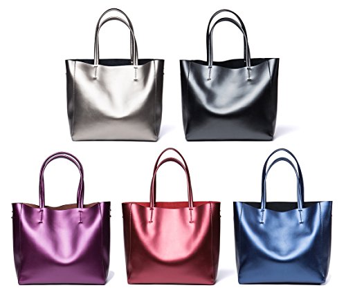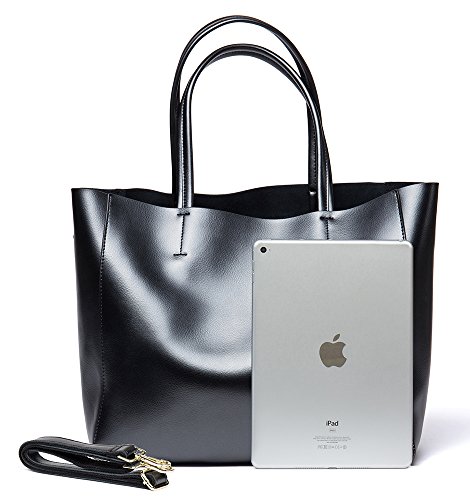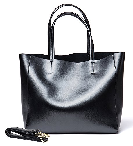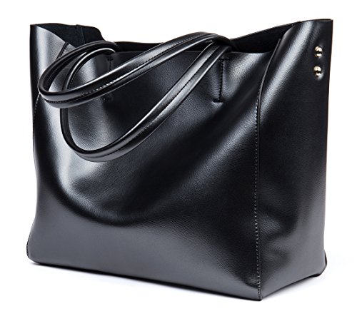 OSONM Womens Pure Color Cow Leather Bag Shoulder Bag Boutique Tote Bags Top Handle Handbag Shopping Bag