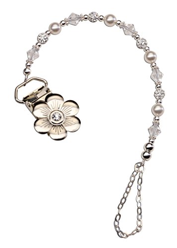 Sterling Silver Daisy Binky Clip with White Swarovski Pearls and Crystals (Clip is Base Metal)