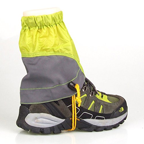 -. Feature : Material: Silicon coated nylon checkered cloth. Size: 22 * 20cm(L x W). Full length rear entry zip, absolutely waterproof. Durable: abrasion resistant treads strap rust-proof shoelace hooker. / With adjustable high density elastic cord on the top, snap fastener hook in the bottom, can seal the area around your leg. / There is webbing cord in the bottom of this gaiter, can be set on the hiking shoes and use with waterproof pants. / Durable and reusable, keep away from mud, trail debris, and hungry insects. Ideal for hiking, climbing, skiing, exploring or other outdoor activities. / With adjustable elastic band and snap fastener for convenient and firm bundling. Velcro and zip for easier putting on and taking off.