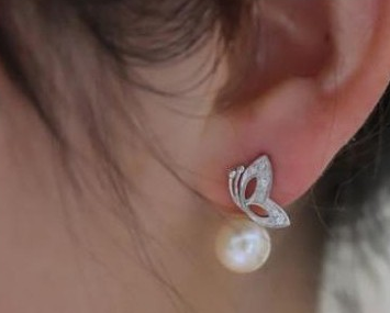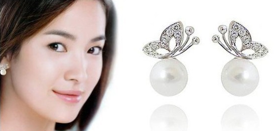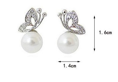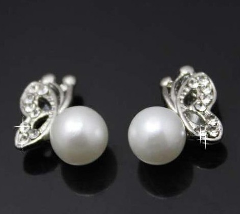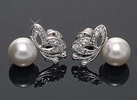 kalung anting set indah Kupu-kupu perak kristal mutiara perhiasan Beautiful butterfly silver plated earrings crystal pearl stud necklace Fashion jewelry set bridal wedding JEW SJA0846535262 GHJ qty003