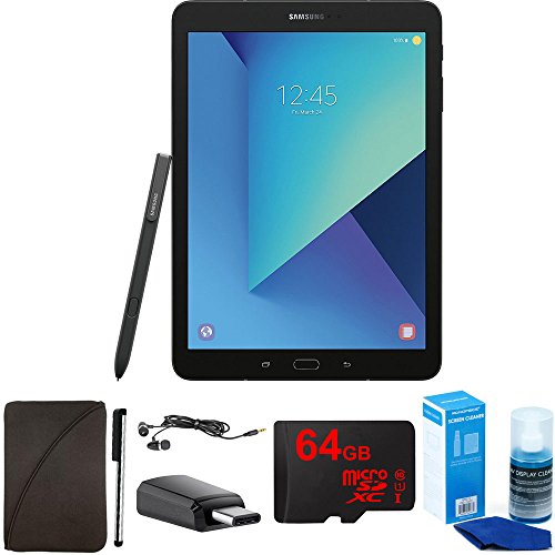 Samsung Galaxy Tab S3 9.7 Inch Tablet with S Pen - Black - 64GB Accessory Bundle includes 64GB MicroSD High-Speed Memory Card, Protective Sleeve, Stylus, USB-C Adapter, Screen Cleaner and Earbuds
