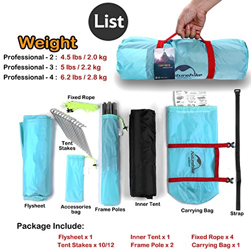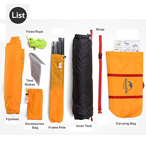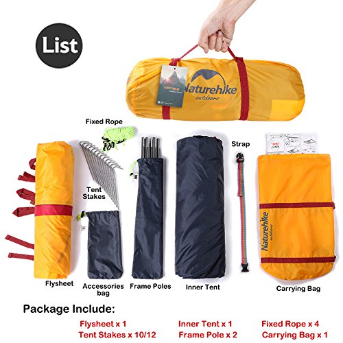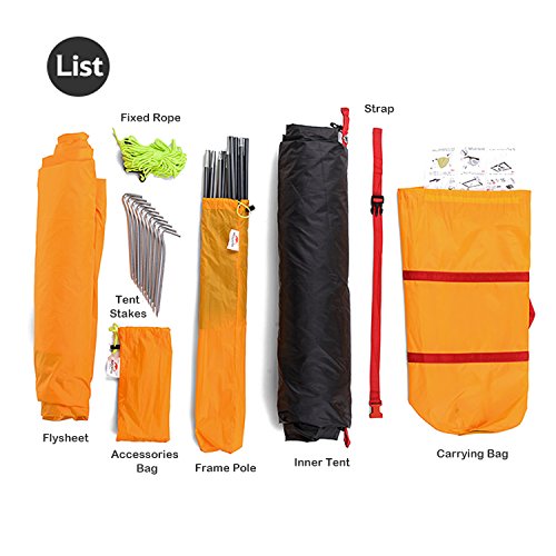 Package Include: - Inner Tent x 1 - Flysheet x 1 - Carrying Bag x 1 - Fixed Rope x 4 - Tent Stakes x 10/12 - Frame Pole x 2 0