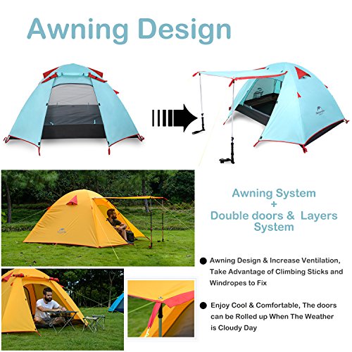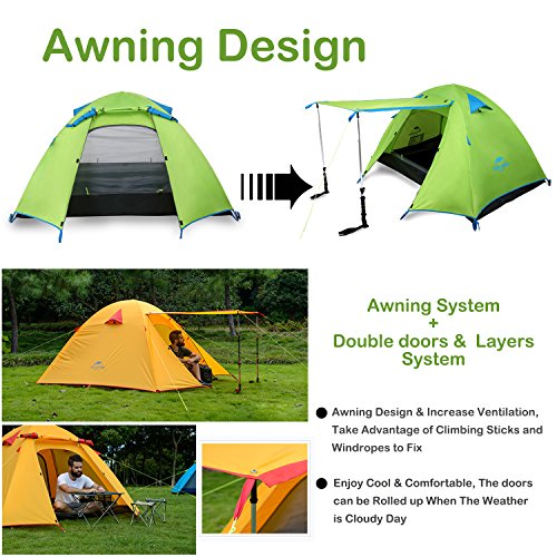 Studio : Topnaca Publisher : Topnaca Product Description Features: - Easy to install. One person can install the tent easily and quickly. With high-strength aluminum poles, lightweight and it can stand high pressure. - Lashing design, easily rolled up, used for fixing aluminum pole and external tent. - Tent door uses two-way zipper, both sides can be tighten, especially add the door curtain pull clasp, more convenient and durable. - Two sides of the ventilation windows can be closed or open freely, it can maintain ventilation in the tent. - The tent has wind ropes fixed all around, it can effectively windproof.