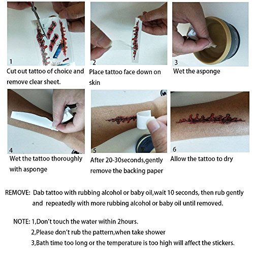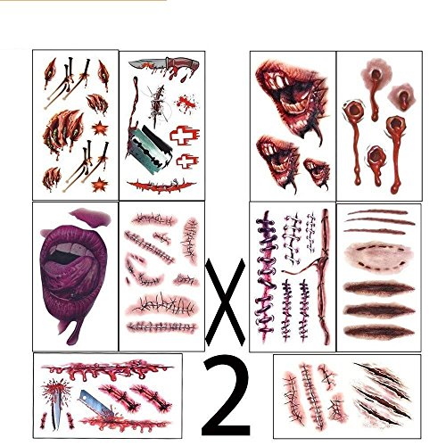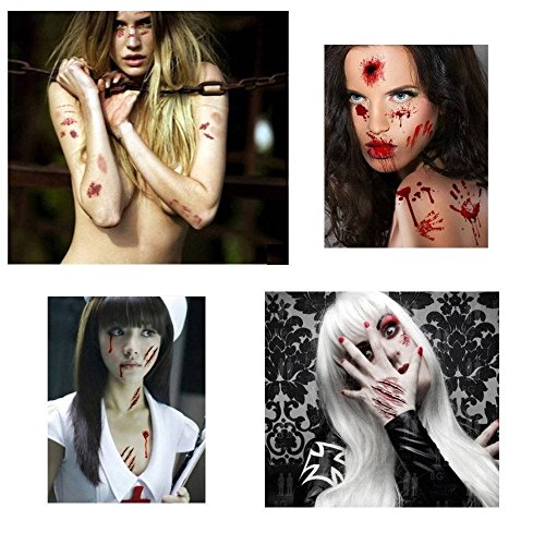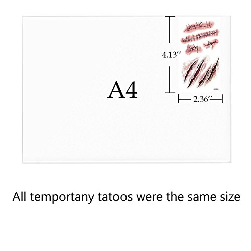 - 【Safety】These Horror Wounds Bloody Scar tattoos are non-toxic and fun for all ages, including kids & adults, The Perfect temporary tattoo, body makeup. Such great accessories to match your halloween party costume