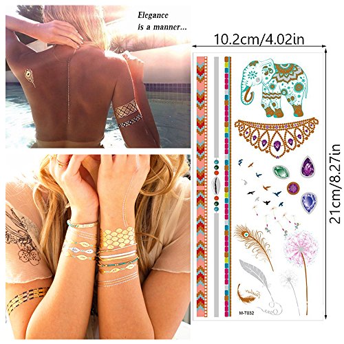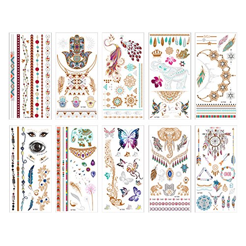 - Flash Temporary Tattoo:Metallic temporaty tattoos is high quality gold and sliver shimmer jewelry ,safe and will no stimulus to your smooth skin.Attractive patterns design with Mandala Boho ,flash temporary tattoo is incredibly easy to apply on your body.You will look absolutely stunning wearing these temporary tattoos.