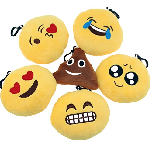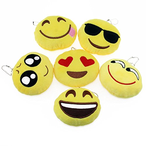 KUMEED Mini Emoji Face Expression Plush Key chains Bag Accessory Pack of 6 (4 inch) B01CJFMINU