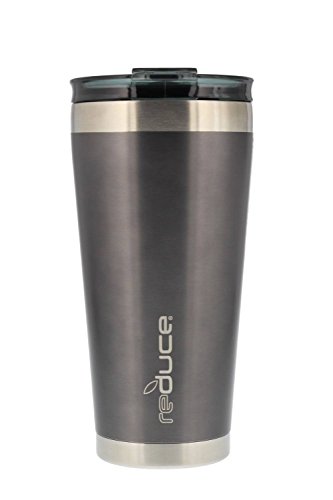 reduce HOT-1 Vacuum Insulated Tumbler with Slender Base, 3-in-1 Lid, 20oz - Tasteless and Odorless Metallic Finish (Gray)