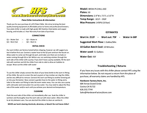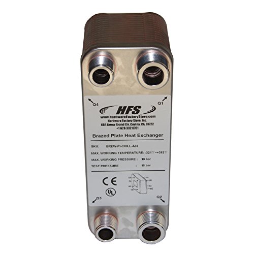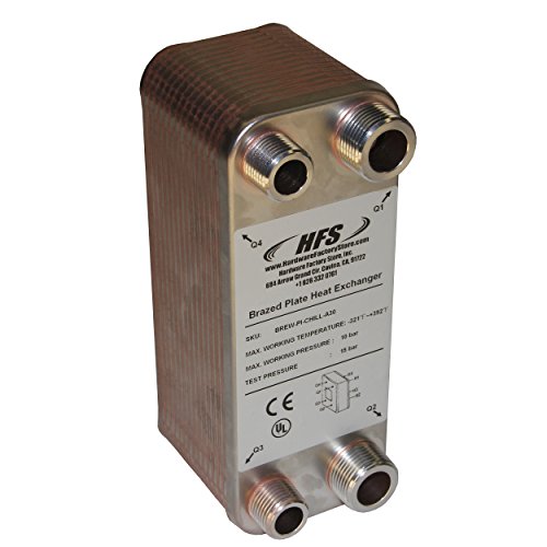 HFS(R) Homebrew Beer Wort Chiller (7.5" x 2.9" 30 Plate 3/4" x 1/2" NPT)