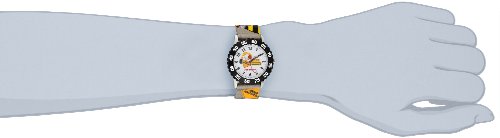 W000328 Features: -Material: Stainless steel. -Classic watch. -Black bezel. -Printed strap. Style: -Children's Watches. Watch Color: -Silver/Steel. Face Color: -Black. Face Color: -White/Beige. Face Color: -Yellow. Product Type: -Analog. Shape: -Round/Oval. Lifestage: -Kids. Generic Specifications: -Case size: 12.7mm H x 31.75mm W x 25.4mm D. Dimensions: Overall Product Weight: -0.5 Pounds.