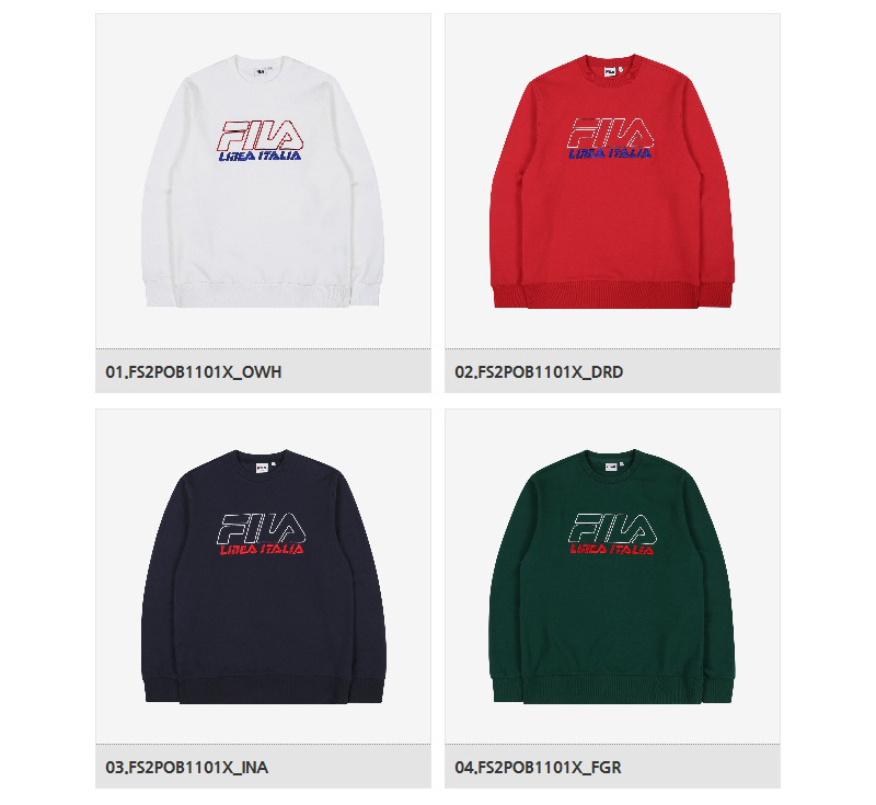 FILA 리니어 ITALIA 로고 맨투맨새롭게 선보이는 FILA NEW 로고 및 자수 기법을 활용한 맨투맨기본 베이직 상품으로 다양한 믹스매치 코디가 용이한 제품면/폴리에스터 혼방 원단으로 사용하여 형태 안정성이 우수하고 세탁하기 매우 용이한 제품