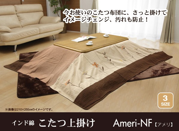 【商品名】インド綿 こたつ上掛けカバー こたつ布団カバー 単品 『アメリNF』 210×210cm