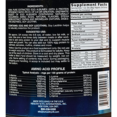 -. Binding : Health and Beauty -. Brand : Healthy 'N Fit -. EAN : 6383756512602 -. Feature : Natural / No Artificial Flavors, Sweeteners or Colors / Highest N.P.U, Highest P.E.R, Highest Chemical Score / Mixes With A Spoon / Absolutely Delicious / Free Of Artificial sweeteners or colors -. IsAdultProduct : 0 -. Label : Healthy N Fit -. Manufacturer : Healthy N Fit -. MPN : KE714204 -. PackageQuantity : 1 -. PartNumber : KE714204 -. ProductGroup : Health and Beauty -. ProductTypeName : HEALTH_PERSONAL_CARE -. Publisher : Healthy N Fit -. Studio : Healthy N Fit -. Title : Healthy 'N Fit Nutritionals 100% Egg Protein Vanilla Ice Cream - 12 oz