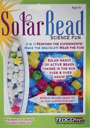 Studio : ConstructivePlaythings Publisher : ConstructivePlaythings Binding : Toy Product Description This Solar Bead kit is 3 in 1 Science Fun! Perform the experiments! Make the bracelet! Wear the fun! The kit features white UV solar active beads that change to vibrant colors in UV light over and over again. Includes UV beads, fun-shaped novelty beads, elastic cord and fun experiments for learning more about UV light. 0