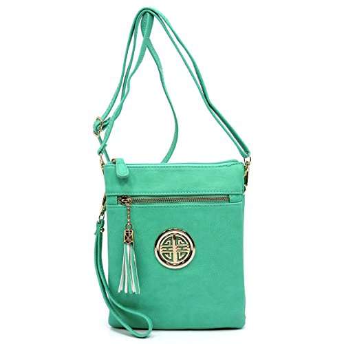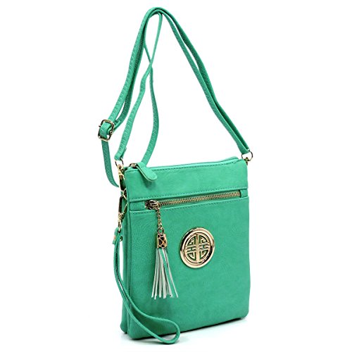 Multi Functional Cross Body Bag with Three Compartments and gold tone emblem by Fashion Glad
