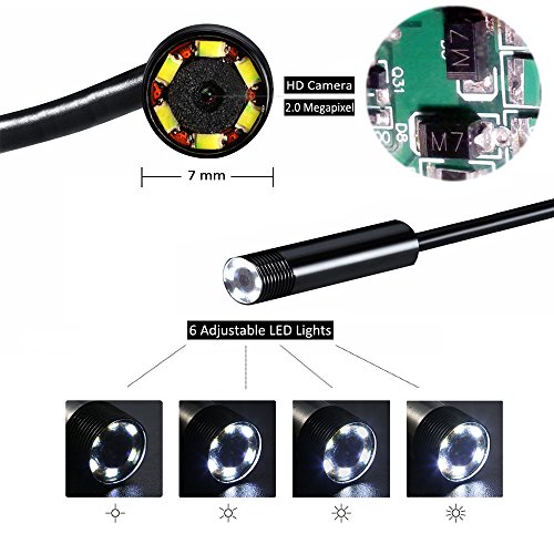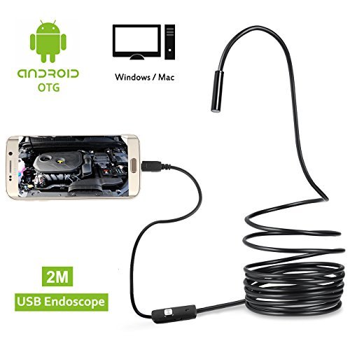 MiluoTech USB Endoscope, 2 in 1 Borescope Inspection Camera 2.0 Megapixel CMOS HD Waterproof Snake Camera with USB Adpater and Adjustable LED Light - 2 Meter