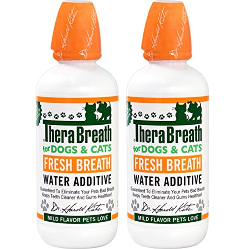 The ingredients in TheraBreath Fresh Breath & Healthy Gums Water Additive for Dogs and Cats have been recognized by veterinarians to effectively reduce plaque and tartar in animals. Use one to three times a day to solve your pet's bad breath and help improve their overall oral health. This formula, specifically for PETS, is based on patented TheraBreath oxygenating technology. This oral solution will instantly alleviate your pet's bad breath at its source. Dr. Katz developed this safe, flavorless, oxygenating solution specifically for pet bad breath, cleaner teeth and healthier gums. TheraBreath is the #1 best-selling mouthwash on Amazon for people. And Dr. Katz has always said “Pets are People too!”Feature