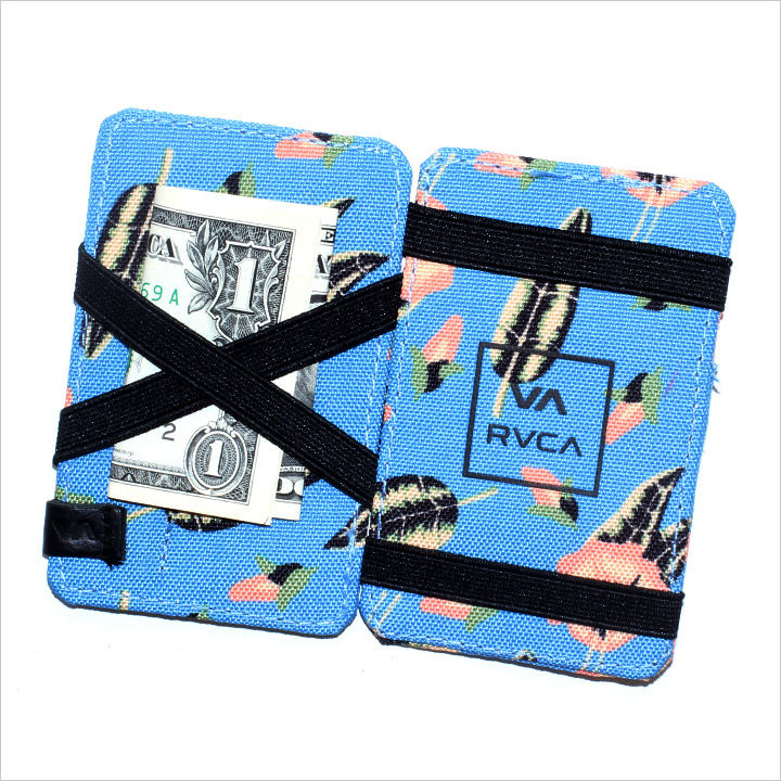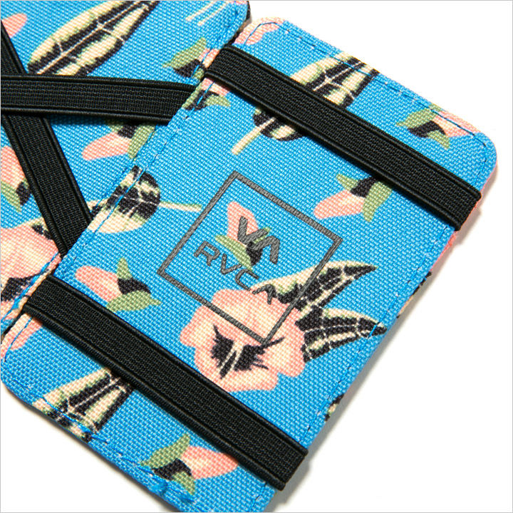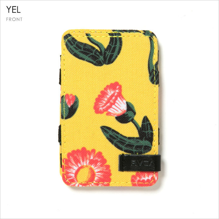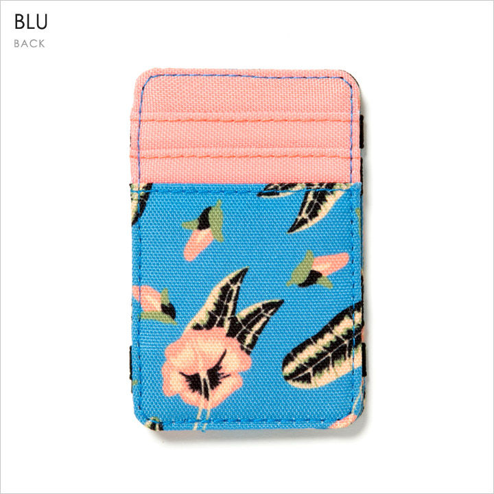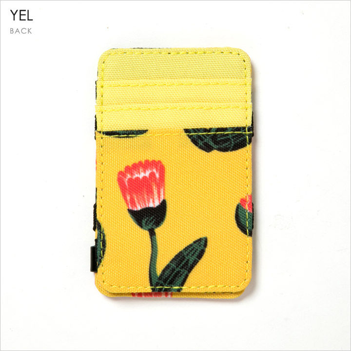 ノースカロライナ州を拠点に全世界でアート活動をしている"LUKE PELLETIER"とのコラボレーション財布。ビビッドなカラーリングと独特で力強いタッチで描かれたボタニカルのイラストに思わず目線を奪われてしまいます。また、両側から開閉が可能で伸縮性とホールド感バツグンのバンド部分にお札やカードなどを挟める仕様になっているマネークリップ式の簡易ウォレット。 ボディーは600Dの厚手ポリエステルなので永く愛用でき、ご旅行やレジャーシーンなどで幅広く使えるオススメアイテムです。