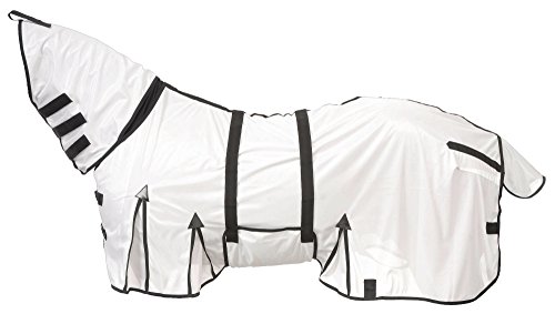 Studio : JT Intl Distributers Inc Publisher : JT Intl Distributers Inc Binding : Misc. Product Description Your horse can turn its nose up at those pesky flies the Tough-1 Deluxe Contour Fly Scrim with Neck Cover keeping them at bay. Made to keep the flies out while letting those cooling breezes through, this fly scrim is made from a lightweight blend of poly and nylon mesh. It fits securely with its 'Quick Grip' belly wrap, adjustable leg straps, and double buckle front. About JT International For over 35 years, JT International has been providing riders with quality equestrian equipment designed to maximize the riding experience. With over 1,100 different types of products available, they offer new and time-honored favorites to riders all over the world. From tack to training supplies, JT International has each rider and their mount covered. Made of durable poly mesh for air circulation. Comes with neck cover, double buckle front, and belly wrap. Features quick grip closure and adjustable leg straps. Protects your horse from annoying flies and pests. Available in a variety of sizes. 0