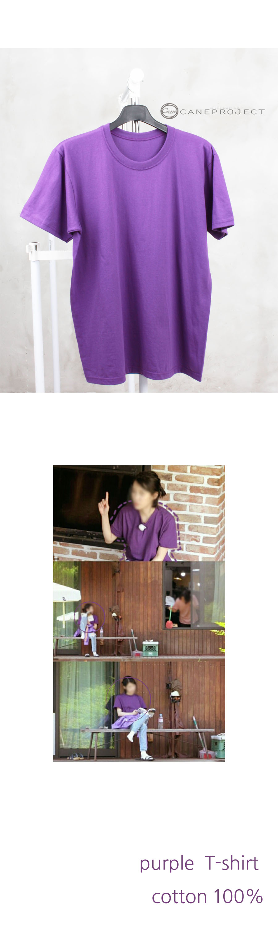 Purple Cotton Plain aa Hyori House Bed and Purple Purple Style Basic Modern Women's Short Sleeve T-Coordinated