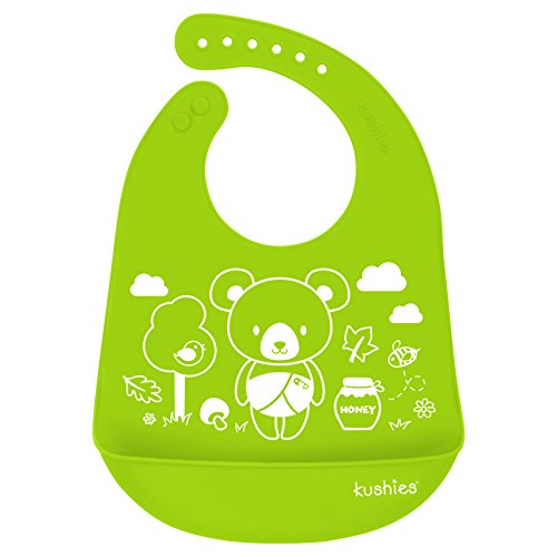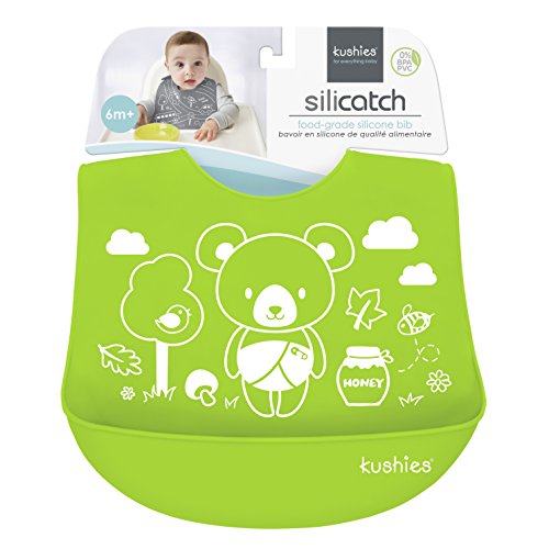 Kushies Baby Silicatch Food,Grade Silicone Bib, Bear, Citrus