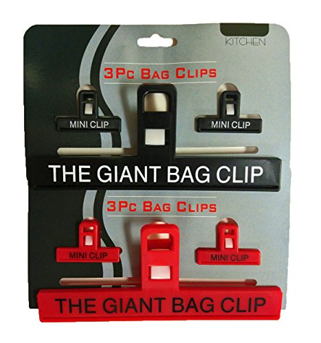 Set of 12 Black Duck Brand Plastic Bag Clips, (4) - Giant Bag Clips & (8) Mini Clips Classic Design Red & Black (12)